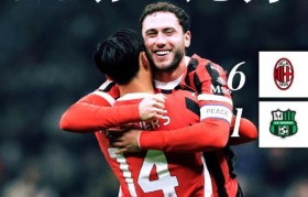 意大利杯1/8决赛,凭借丘库埃泽的梅开二度及赖因德斯、莱昂、亚伯拉罕和卡拉布里亚的进球,最终米兰在主...