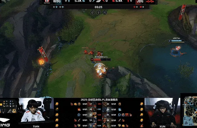 虎扑09月26日讯 WBG上路抓死Xiaoxu拿下一血,随后JDG野区碰撞完成0换2