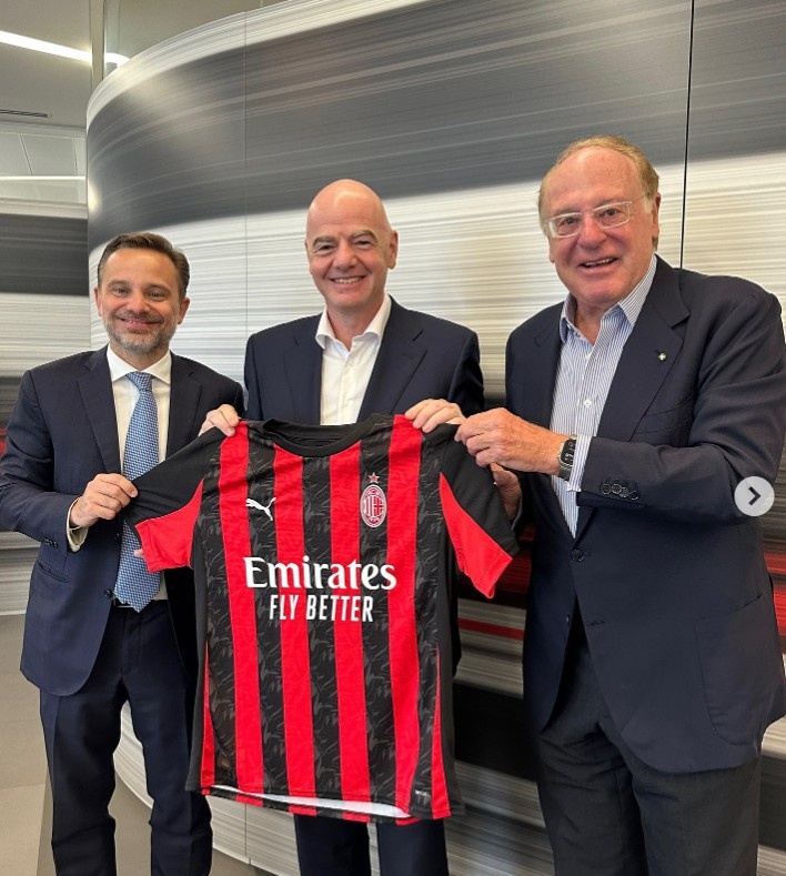 星空体育官网-国际足联主席因凡蒂诺造访米兰总部,并与米兰高层合影